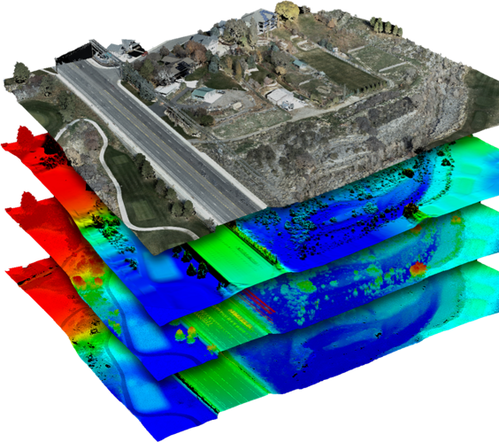 Ergebnisse aus Drohnenvermessung, LiDAR-Befliegung und terrestrischem Scanning.