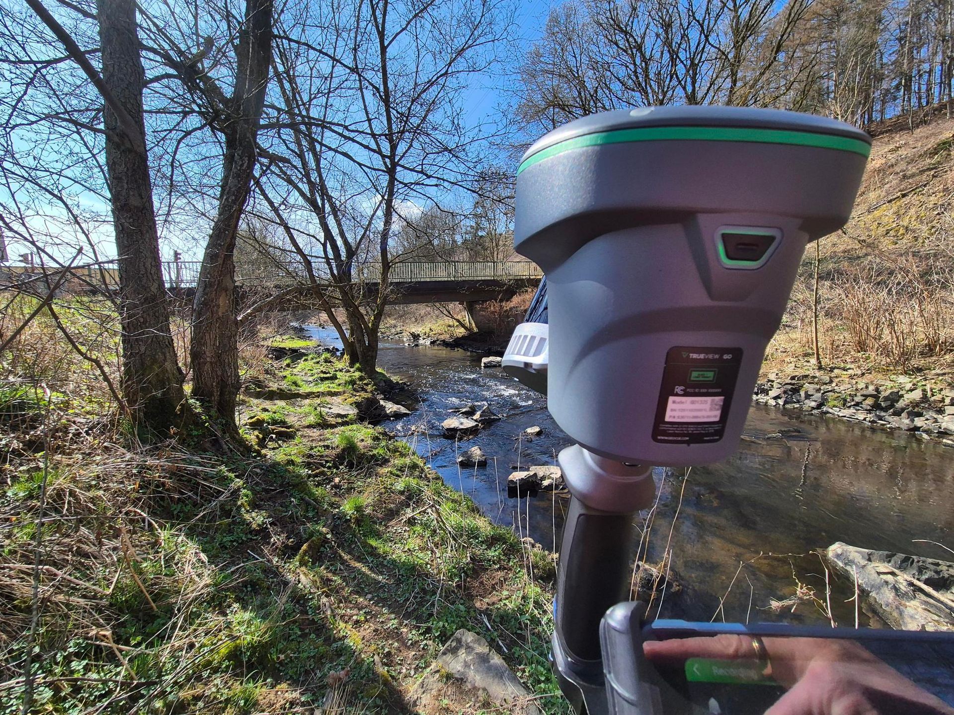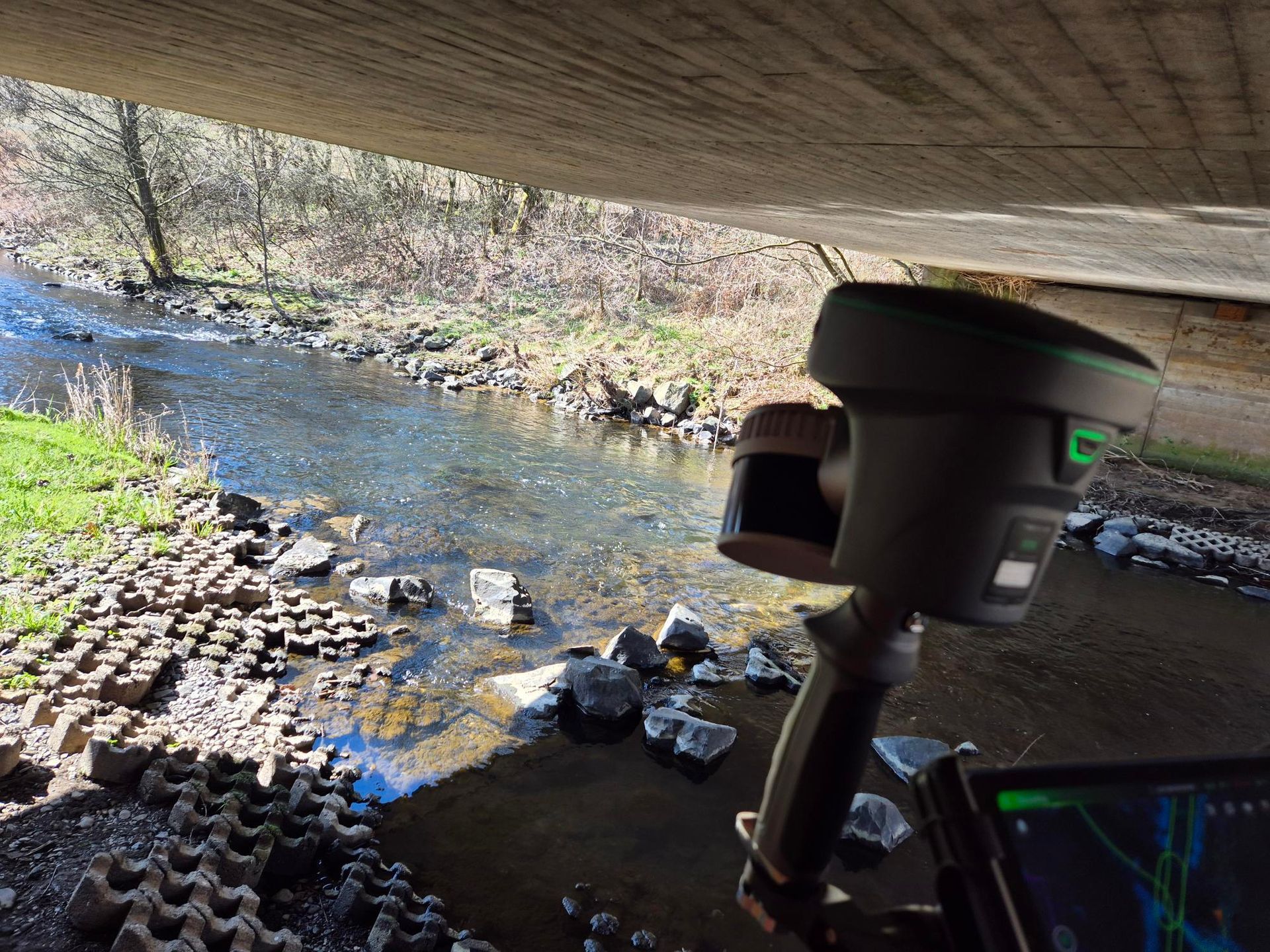 Klassische Verfahren wie Drohnenbefliegungen oder reine GNSS-Messungen stoßen jedoch an ihre Grenzen. Unter Brücken, in der Nähe von Hochspannungsleitungen oder in Bereichen mit dichter Vegetation sind Satellitensignale oft gestört oder gar nicht verfügbar. Auch die reine Bildauswertung mit Drohnen liefert in solchen Situationen nicht die nötige Genauigkeit oder Vollständigkeit.